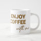 Un tazón de café de estilo jumbo con un diseño de texto marrón minimalista de moda que dice "Disfruta del café conmigo". El diseño es personalizable, incluyendo el contenido textual y el color. Para ello, sólo tiene que seleccionar el botón "Editar este diseño" y realizar la edición en la sección de edición.