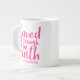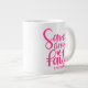 Jumbo Algunos días, una taza de jue de tamaño normal no sirve. Cuando necesites un toque extra de cafeína, saca esta taza gigante de café de Zazzle. Tiene capacidad suficiente para una medida Venti (20 onzas). ¡Y también la pudes usar para tomar sopa, cereales o incluso helado! Esta taza gigante cuenta con un asa en forma de "C" para mayor comodidad. Dimensiones: Altura: 4,5" Diámetro: 3,9" Capacidad: 20 onzas Caja fuerte de microondas y lavavajillas Construcción fuerte, cerámica Cumple o excede los requisitos de la FDA para la seguridad de los alimentos y bebidas Impresión a petición en Reno, NV Designer Tip: Para garantizar la impresión de máxima calidad, tenga en cuenta que el área de diseño de personalizable de este producto mide 4" de alto x 10,5" de ancho