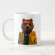Este diseño presenta un retrato de oso vestido con gafas y una chaqueta.
