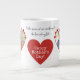 Con un vibrante corazón de amor rojo en su centro, adornado con las palabras 'Feliz Día de la Madre', esta taza es una muestra de amor y aprecio. Engrabado arriba hay un tierno tributo: "A la reina de nuestro castillo y al amor de mi vida". Comparte recuerdos preciosos insertando dos fotos preciadas en los espacios cardíacos de amor que lo acompañan, haciendo de esta taza un keepsake personalizado