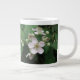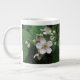 Esta increíble taza muestra una fotografía de una viña de mora negra cubierta de flores. Estas hermosas flores se ven blancas a lo lejos, pero si miras de cerca, los pétalos tienen un matiz rosa pálido.