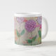 Creadas como obras de arte de medios mixtos, estas Flores de Lollipop fueron dibujadas a mano con las hojas terminadas en plumas de pintura acuarela después de pintar el fondo de pintura acrílica y sacadas de una Placa Gelli, haciendo de esta taza de café un regalo delicioso.