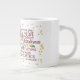 Jumbo Algunos días, una taza de jue de tamaño normal no sirve. Cuando necesites un toque extra de cafeína, saca esta taza gigante de café de Zazzle. Tiene capacidad suficiente para una medida Venti (20 onzas). ¡Y también la pudes usar para tomar sopa, cereales o incluso helado! Esta taza gigante cuenta con un asa en forma de "C" para mayor comodidad. Dimensiones: Altura: 4,5" Diámetro: 3,9" Capacidad: 20 onzas Caja fuerte de microondas y lavavajillas Construcción fuerte, cerámica Cumple o excede los requisitos de la FDA para el diseño de seguridad de alimentos y bebidas Consejo: Para garantizar la impresión de máxima calidad, tenga en cuenta que el área de diseño de personalizables de este producto mide 4" de alto x 10,5" de ancho