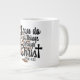 Jumbo Algunos días, una taza de jue de tamaño normal no sirve. Cuando necesites un toque extra de cafeína, saca esta taza gigante de café de Zazzle. Tiene capacidad suficiente para una medida Venti (20 onzas). ¡Y también la pudes usar para tomar sopa, cereales o incluso helado! Esta taza gigante cuenta con un asa en forma de "C" para mayor comodidad. Dimensiones: Altura: 4,5" Diámetro: 3,9" Capacidad: 20 onzas Caja fuerte de microondas y lavavajillas Construcción fuerte, cerámica Cumple o excede los requisitos de la FDA para el diseño de seguridad de alimentos y bebidas Consejo: Para garantizar la impresión de máxima calidad, tenga en cuenta que el área de diseño de personalizables de este producto mide 4" de alto x 10,5" de ancho
