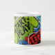 Start your day with a big dose of personality using this jumbo specialty mug. Designed for those who need more coffee and less refills, it’s made from durable ceramic and features a comfortable handle for easy sipping. Perfect for coffee, tea, cocoa, or your favorite oversized beverage.