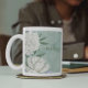 Celebrate the groom with this elegant sage green peony floral mug — a timeless wedding keepsake he’ll love every morning. Featuring detailed white peonies and soft botanicals on a serene background, this oversized 20-ounce mug brings refined style and meaningful sentiment to wedding mornings, engagements, or newlywed moments. Crafted from high-quality ceramic, it’s perfect for coffee, tea, or quiet reflection during wedding festivities.