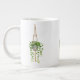 A boho-chic mug featuring a line drawing of a hanging macrame plant holder. A cozy, stylish gift for plant lovers and modern hippies.