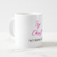 Estilo: Jumbo Algunos días, una taza de jue de tamaño normal no sirve. Cuando necesites un toque extra de cafeína, saca esta taza gigante de café de Zazzle. Tiene capacidad suficiente para una medida Venti (20 onzas). ¡Y también la pudes usar para tomar sopa, cereales o incluso helado! Esta taza gigante cuenta con un asa en forma de "C" para mayor comodidad. Dimensiones: 20 onzas: 3,9" D x 4,5" H Microondas y lavavajillas Seguridad Fuerte, construcción de cerámica Cumple con los requisitos de la FDA para la seguridad de los alimentos y bebidas Impresa a petición en Reno, NV