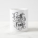 Jumbo Algunos días, una taza de jue de tamaño normal no sirve. Cuando necesites un toque extra de cafeína, saca esta taza gigante de café de Zazzle. Tiene capacidad suficiente para una medida Venti (20 onzas). ¡Y también la pudes usar para tomar sopa, cereales o incluso helado! Esta taza gigante cuenta con un asa en forma de "C" para mayor comodidad. Dimensiones: Altura: 4,5" Diámetro: 3,9" Capacidad: 20 onzas Caja fuerte de microondas y lavavajillas Construcción fuerte, cerámica Cumple o excede los requisitos de la FDA para la seguridad de los alimentos y bebidas Impresión a petición en Reno, NV Designer Tip: Para garantizar la impresión de máxima calidad, tenga en cuenta que el área de diseño de personalizable de este producto mide 4" de alto x 10,5" de ancho