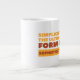 Jumbo Algunos días, una taza de jue de tamaño normal no sirve. Cuando necesites un toque extra de cafeína, saca esta taza gigante de café de Zazzle. Tiene capacidad suficiente para una medida Venti (20 onzas). ¡Y también la pudes usar para tomar sopa, cereales o incluso helado! Esta taza gigante cuenta con un asa en forma de "C" para mayor comodidad. Dimensiones: Altura: 4,5" Diámetro: 3,9" Capacidad: 20 onzas