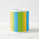 Taza De Café Gigante Jumbo Mug: franjas turquesa, amarillas y verdes