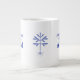 Un tazón de 20 onzas esperando tu bebida caliente de elección, declarando tu estado de alio SR y marcado con una toma, todo en azul