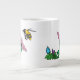 Dos pequeños espíritus florales se amontonan detrás de su madre cuando una abeja grande se acerca. El espíritu floral padre protege a los pequeños presentando su flor completamente florida al insecto. Esta taza está disponible en tamaños y estilos de jumbo, espresso y porcelana ósea.