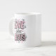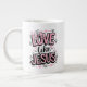 This inspirational mug features bold pink LOVE with a bow and stylized JESUS surrounded by hearts and sparkles. A beautiful gift for faith-filled mornings and spiritual encouragement.