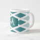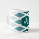 Taza De Café Gigante Monograma verde azulado de diamante