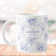 Taza De Café Gigante Monogrammed Classic Blue Flowers Floral Pattern