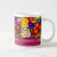 Jumbo Algunos días, una taza de jue de tamaño normal no sirve. Cuando necesites un toque extra de cafeína, saca esta taza gigante de café de Zazzle. Tiene capacidad suficiente para una medida Venti (20 onzas). ¡Y también la pudes usar para tomar sopa, cereales o incluso helado! Esta taza gigante cuenta con un asa en forma de "C" para mayor comodidad. Dimensiones: Altura: 4,5" Diámetro: 3,9" Capacidad: 20 onzas Caja fuerte de microondas y lavavajillas Construcción fuerte, cerámica Cumple o excede los requisitos de la FDA para el diseño de seguridad de alimentos y bebidas Consejo: Para garantizar la impresión de máxima calidad, tenga en cuenta que el área de diseño de personalizables de este producto mide 4" de alto x 10,5" de ancho