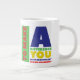 Hay días en los que una taza normal no es suficiente. Cuando necesites un toque extra de cafeína, saca esta taza gigante de café de Zazzle. Tiene capacidad suficiente para una medida Venti (20 onzas). ¡Y también la pudes usar para tomar sopa, cereales o incluso helado! Esta taza gigante cuenta con un asa en forma de "C" para mayor comodidad. Dimensiones: Altura: 4,5" Diámetro: 3,9" Capacidad: 20 onzas Caja fuerte con microondas y lavavajillas Construcción fuerte, cerámica Cumple o exceda los requisitos de la FDA para la seguridad de los alimentos y bebidas