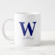 Taza De Café Gigante Mug monograma personalizado azul oscuro moderno