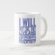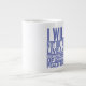 Jumbo Algunos días, una taza de jue de tamaño normal no sirve. Cuando necesites un toque extra de cafeína, saca esta taza gigante de café de Zazzle. Tiene capacidad suficiente para una medida Venti (20 onzas). ¡Y también la pudes usar para tomar sopa, cereales o incluso helado! Esta taza gigante cuenta con un asa en forma de "C" para mayor comodidad. Dimensiones: Altura: 4,5" Diámetro: 3,9" Capacidad: 20 onzas Caja fuerte de microondas y lavavajillas Construcción fuerte, cerámica Cumple o excede los requisitos de la FDA para la seguridad de los alimentos y bebidas Impresión a petición en Reno, NV Designer Tip: Para garantizar la impresión de máxima calidad, tenga en cuenta que el área de diseño de personalizable de este producto mide 4" de alto x 10,5" de ancho