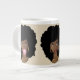 Este diseño presenta una belleza natural del cabello con un afro negro, chicle y flor rosa en el pelo sobre un fondo beige. Gran regalo para tu novia amante del café, hermana, prima, etc.