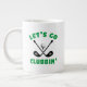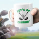 El diseño divertido del palo de golf presenta un lema lindo "Vamos a ir de club" en tipo verde dispuesto con dos palos de golf y una pelota de golf en negro y blanco sólido sobre un fondo blanco. Envíe un mensaje debajo de esta lista o envíe un correo electrónico a beachpause@gmail.com con solicitudes de colores personalizados. ¡Gran idea para el golfista ávido en tu vida!