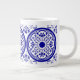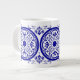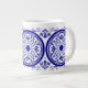 Taza De Café Gigante Patrón de mosaico gótico azul blanco