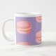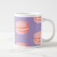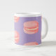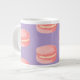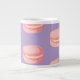 Sweet and delectable pink macarons elegantly displayed against a vibrant purple background.