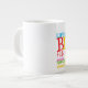 Jumbo Algunos días, una taza de jue de tamaño normal no sirve. Cuando necesites un toque extra de cafeína, saca esta taza gigante de café de Zazzle. Tiene capacidad suficiente para una medida Venti (20 onzas). ¡Y también la pudes usar para tomar sopa, cereales o incluso helado! Esta taza gigante cuenta con un asa en forma de "C" para mayor comodidad. Dimensiones: Altura: 4,5" Diámetro: 3,9" Capacidad: 20 onzas Caja fuerte de microondas y lavavajillas Construcción fuerte, cerámica Cumple o excede los requisitos de la FDA para el diseño de seguridad de alimentos y bebidas Consejo: Para garantizar la impresión de máxima calidad, tenga en cuenta que el área de diseño de personalizables de este producto mide 4" de alto x 10,5" de ancho