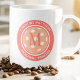 Diseño de taza de café gigante femenina de moda en durazno y naranja que presenta dos líneas de texto personalizable para "Princesa de Pickleball" o dicho personalizado y nombre o texto personalizado en una fuente moderna atemporal arqueada sobre y bajo una imagen de una pelota de pickleball en rosa a juego. Agrega una o dos iniciales en el centro del diseño sobre la imagen de la pelota. Las combinaciones de iniciales más grandes pueden necesitar ser reducidas de tamaño para espaciar. El diseño se repite en el lado opuesto. Contáctame para preguntas o solicitudes de color personalizado.