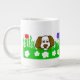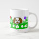 Pueden admirar mi adorable dibujo de un cachorro esponjoso jugando con césped verde lleno de flores, yo llamo a este dibujo, "Pup N Play". Este Jumbo Mug es el regalo perfecto para cualquier ocasión.