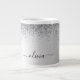 Taza De Café Gigante Purpurina de Monograma Plateado Sparkle Girly Scri