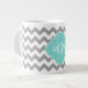 Taza De Café Gigante Quatrefoil de Chevron Aqua Gris 3 Monograma