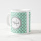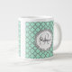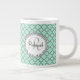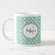 Patrón de fondo marroquí en tonos verde menta sabio y gris plata, con una corona de laurel gris, y una letra inicial giratoria monograma y nombre o apellido en escritura. Adorables mujeres regalo personalizado para cualquier ocasión.