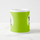 Nunca dejes de tener curiosidad por el mundo. Una taza de especialidad con un curioso robot verde viendo una mariposa colorida por primera vez, se coloca en una colina de hierba con margaritas. Utilice "Personalice esta plantilla" para cambiar el texto "¡Siéntese curioso!" si lo desea; los cambios de texto se reflejan en ambos lados. Podría ser una imagen sobre amistad, descubrimiento o aprendizaje. Un diseño que combina ciencia ficción y naturaleza.