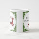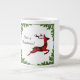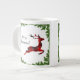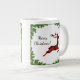 Esta taza especial festiva y colorida para Navidades presenta un reno volador de yeso rojo festivo enmarcado en brotes de ramas verdes brillantes. ¡Perfecto para la celebración de sus Navidades! Personalízalo con tu propio saludo de vacaciones!