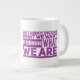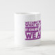 Jumbo Algunos días, una taza de jue de tamaño normal no sirve. Cuando necesites un toque extra de cafeína, saca esta taza gigante de café de Zazzle. Tiene capacidad suficiente para una medida Venti (20 onzas). ¡Y también la pudes usar para tomar sopa, cereales o incluso helado! Esta taza gigante cuenta con un asa en forma de "C" para mayor comodidad. Dimensiones: Altura: 4,5" Diámetro: 3,9" Capacidad: 20 onzas Caja fuerte de microondas y lavavajillas Construcción fuerte, cerámica Cumple o excede los requisitos de la FDA para el diseño de seguridad de alimentos y bebidas Consejo: Para garantizar la impresión de máxima calidad, tenga en cuenta que el área de diseño de personalizables de este producto mide 4" de alto x 10,5" de ancho
