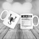 La taza de café de Scorpio con los datos de nutrición en el trasero - puede ser personalizar de todos los elementos. Un gran regalo para los señores de Scorpio zodiac.