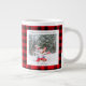 Taza De Café Gigante Rustic Green Red Plaid Monogram 2 Photo Christmas