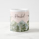 Comience sus mañanas con el encanto rústico de nuestra taza de café gigante Watercolor Pine Forest & Mountain. Personalízalo con tu nombre para un toque acogedor.
