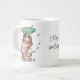 Una taza de especialidad para recordarnos lo positivo; mostrando un feliz conejillo de indias bailando bajo la lluvia, con una sabrosa hoja de nasturcio para un paraguas. El texto predeterminado dice "Sigue sonriendo", cambia a un título diferente si se prefiere. Dicen que fingir una sonrisa puede cambiar tu estado de ánimo.