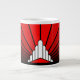 Un clásico estilo Art Deco patrón solar en rojo. Un patrón icónico del sol saliendo por detrás de un estilizado edificio de estilo Art Déco. Un diseño sencillo pero elegante, fiel a la época.