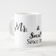Este diseño de Mr. y Mrs. Giant Coffee Mug es la manera perfecta de empezar el día. Con su diseño sencillo y elegante, es una gran adición a su rutina matutina. La gran capacidad te permitirá tomar un café o un té para empezar el día. Ya sea que esté disfrutando de una mañana tranquila en casa o compartiendo una taza con su ser querido, esta taza es una deliciosa elección. Su construcción de alta calidad y su encantador diseño lo convierten en un regalo ideal para bodas, aniversarios o cualquier ocasión especial. Se puede personalizar con los nombres de la pareja y la fecha del matrimonio. Usted puede elegir mantener "Mr. & Mrs." tal como está o modificarlo para crear dos tazas separadas, una para el Sr. y otra para la Sra. Esto lo convierte en un regalo versátil y reflexivo para las parejas.