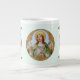La cromolitografía, que empleaba placas de piedra caliza en su proceso de impresión, se distingue por "puntos" irregulares de color visibles en su salida. Este efecto de endurecimiento inspiró el fondo de esta taza de café. ¿No te gusta el fondo estirado? Simplemente utilice el menú de personalización para eliminar su imagen y mostrar un fondo amarillo pastel bajo el mismo. El código hexadecimal del amarillo es #EFE3AD y, por supuesto, está sujeto a cambios. Para elegir un nuevo color de fondo o texto, vea los matices de coordinación sugeridos en la postal de la paleta de color de esta imagen. Las postales de la paleta de color se encuentran en la COLLECTION asociada a la imagen y en la COLLECTION especial dedicada sólo a las paletas de color. + Crédito de la imagen (BK 005): Imagen antigua de St. Philomena de finales del siglo XIX y principios del siglo XX de una imagen decorativa cromolitográfica, publicada originalmente por B. Kühlen, Mönchengladbach, Alemania, de la colección privada de ephemera religiosa del diseñador. + Festín: 11 de agosto