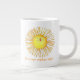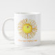 Handgezeichnete Illustration einer Sonne mit Tagesmotto auf transparentem Hinetrgund. So kannst du die Hindergrundfarbe anpassen und den Text editieren.