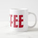 Estas tazas especializadas, esta es de hueso de China, presentan la palabra CAFÉ en letras rojas audaces con una imagen en gran ángulo de una taza de café negro en lugar de la letra "O". Estas tazas hacen una fuerte declaración ideal para los amantes del café para esa muy necesaria infusión de cafeína. Está disponible en múltiples estilos y tamaños para satisfacer tu gusto.