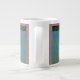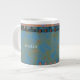 El diseño gráfico original de ZoeSPEAK en este jumbo Mug fue creado a partir de un escaneo de una tira de película de 35 mm. Los colores de fondo son tonos azules y oxidaciones. Los colores de las tiras de película son azul acuático mudo y marrones dorados. La parte superior de la tira de película, donde se dobla, es negra con luces azul acuático. La línea de texto en blanco, que dice "estudio", está configurada para personalizar, usar como está, o borrar.