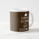 Taza de café con las palabras, "TOMA CAFÉ Y COME GALLETAS". Para amantes del café. Diseño basado en el cartel británico de 1939 "Mantén la calma y sigue adelante".
