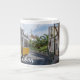 Taza De Café Gigante Tranvía amarillo retro en la calle en Lisboa, Port