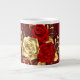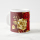 La composición de dos rosas rojas pintadas artistalmente y un rosa dorado, decorado con oro, hojas de joyas sobre fondo texturado.